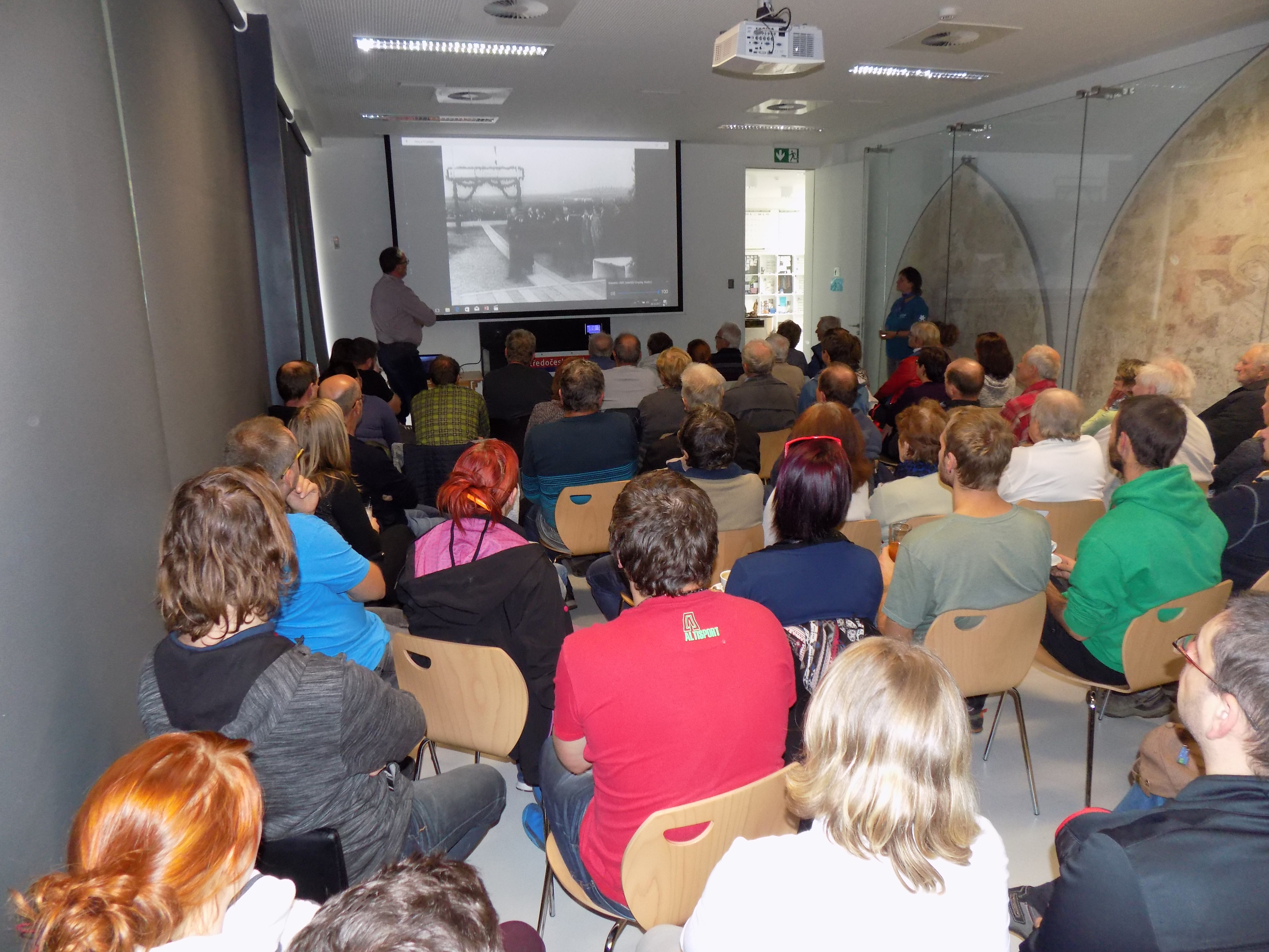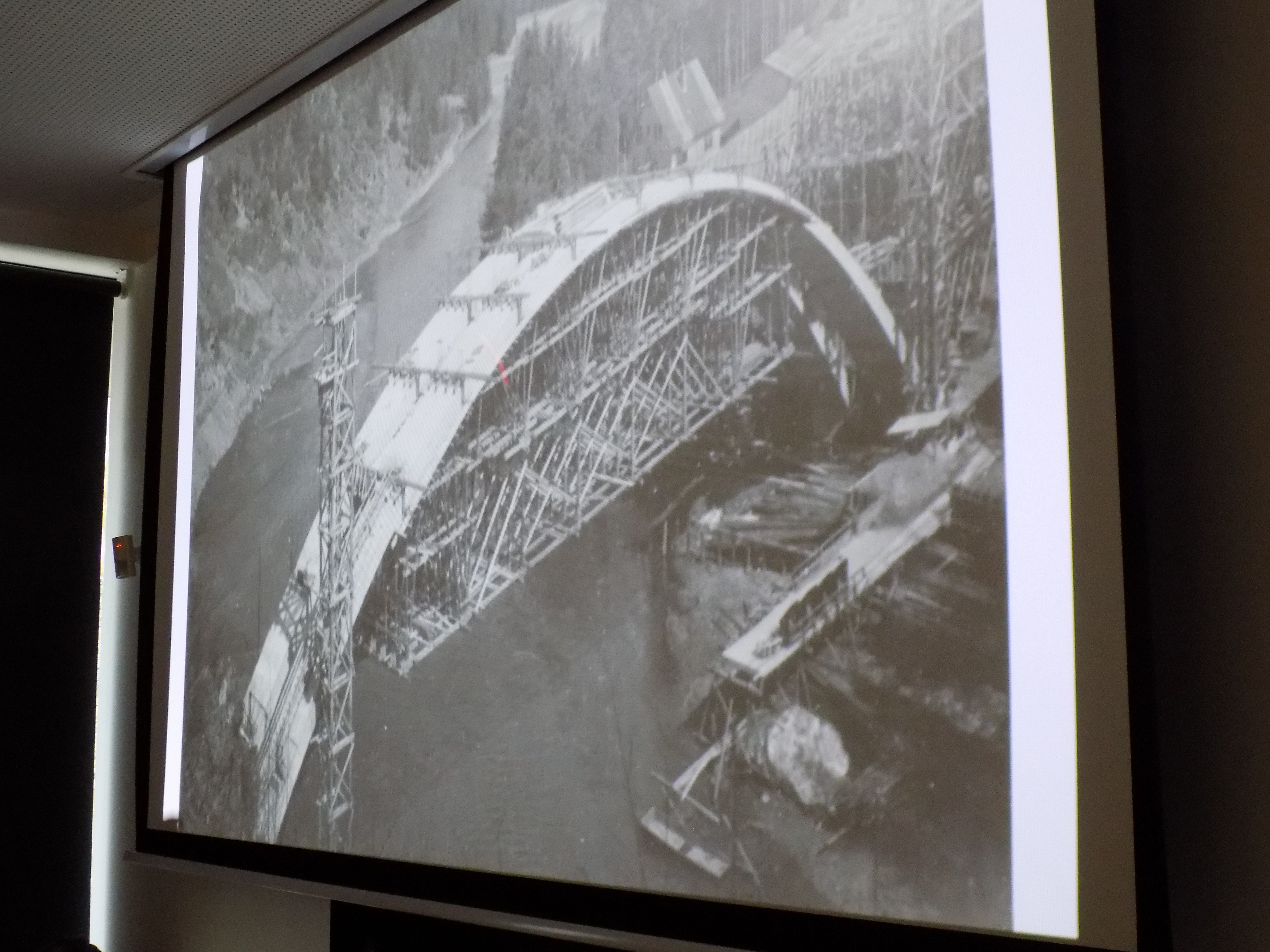 Zaplněný sál hodinu a půl bedlivě naslouchal vyprávění badatele a publicisty Tomáše Jandy, který se dlouhodobě zabývá právě historií výstavby dálnic a vývojem mostního stavitelství. Na programu bylo promítání filmu zachycujícího dobové momenty a dále pak poutavá přednáška o stavbě dálnice s ukázkami fotografií, z nichž asi nejvíce zaujaly ty, které zobrazovaly průběh stavby jednotlivých dálničních mostů.