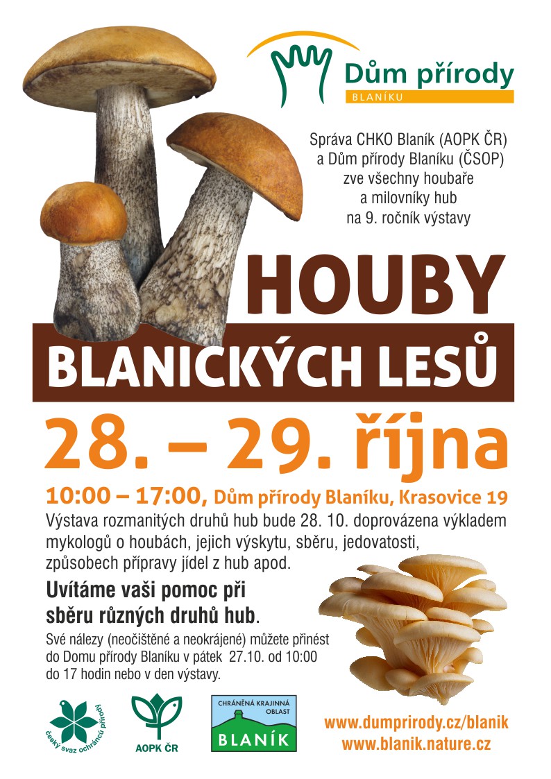 AOPK ČR, regionální pracoviště Střední Čechy – Správa CHKO Blaník a Český svaz ochránců přírody Vlašim srdečně zvou všechny houbaře a milovníky hub na tradiční výstavu hub blanických lesů.