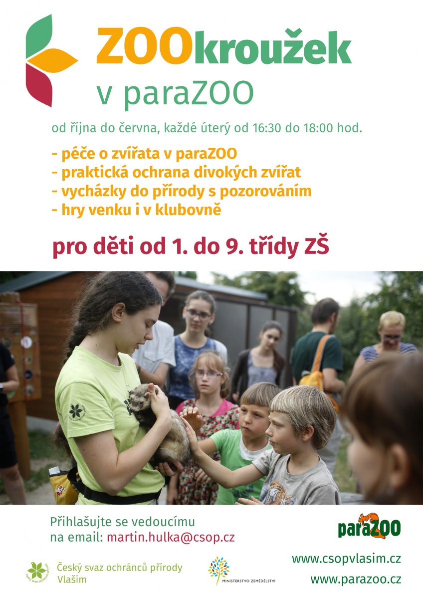 Od letošního října mohou žáci základních škol navštěvovat nový kroužek, který bude probíhat přímo v zoologické zahradě. Během pravidelných schůzek se děti dozví, co obnáší péče o chovaná zvířata a z jakých důvodů se nemohou vrátit do volné přírody. Kromě zvířat v paraZOO budou děti pozorovat také volně žijící živočichy. Poznají, co vše leze, plave, chodí, létá nebo se plazí v naší přírodě a jak nejlépe žit s těmito tvory v přírodě.