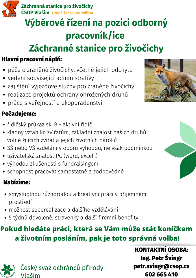 Výběrové řízení na pozici odborný pracovník/ice Záchranné stanice pro živočichy